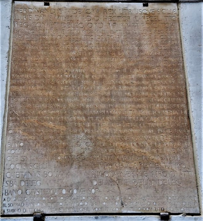 [Targa collocata a Napoli in piazza S. Domenico Maggiore (chiesa)]