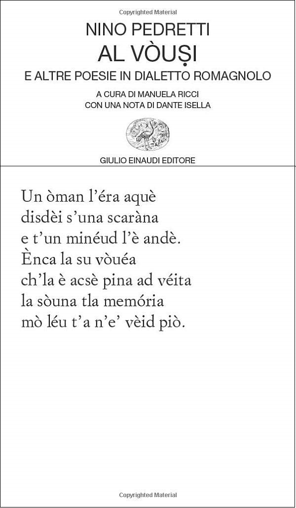 [Nino Pedretti, Al vòusi e altre poesie in dialetto romagnolo, Einaudi 2007]