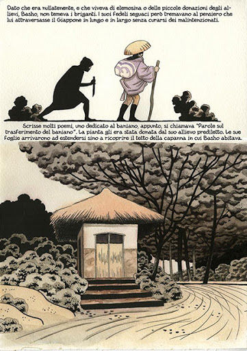 Il Giappone era diventato per me lo scrigno dei desideri e soprattutto il paradiso dei disegnatori. Inebriato dalle vecchie stampe giapponesi, mi ero addentrato in quel mondo di segni apparentemente semplici che celavano una sapienza misteriosa. Avevo convinto me stesso e i miei editor della Kodansha che nella mia vita precedente ero stato giapponese. Loro,cerimoniosi, mi avevano accolto con un inchino: ‘Noi giapponesi siamo lieti di lavorare con Lei, che a sua volta, nella vita precedente, è stato giapponese’. Adoravo quelle persone, ironiche e lievi, ma dedite al lavoro con un rigore che non avevo mai visto prima. In quel soggiorno il mal di Giappone prese ad avvolgermi, sotto la sembianza di una dolce malinconia. Mi rattristava la bellezza antica di questa o quella casa di legno e carta di riso, che scorgevo di tanto in tanto nel mio quartiere. Evocava un passato perduto”.